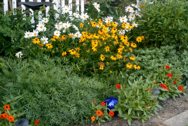 As an artist, I create with color and design and inspiration. In my gardens, I feel I'm a part of God's creation. I try to design my gardens based on color, texture, and composition. I use garden art to highlight some areas and have included many of my painted pieces in the garden. It's all about color, isn't it?